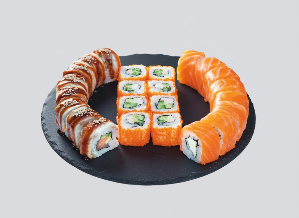 Филадельфия, Калифорния, Дракон (24 шт.) Соевый соус (2 шт.), имбирь (30 г), васаби (15 г)