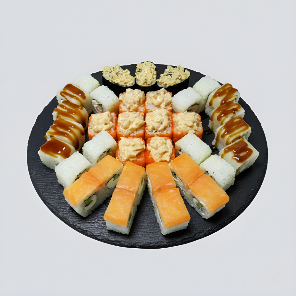 Фила лайт, Калифа лайт, Фишка ролл, Гурман, 3 острые суши с мидиями (35 шт.) Соевый соус (3 шт.), имбирь (40 г), васаби (15 г)
