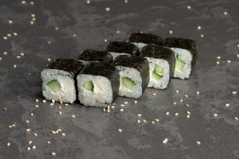 Сливочный сыр,огурец,рис,нори (8шт)