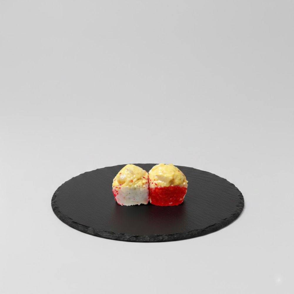 Сливочный сыр, морской гребешок, томаго, икра тобико, спайси-соус, сыр моцарелла (8 шт.)