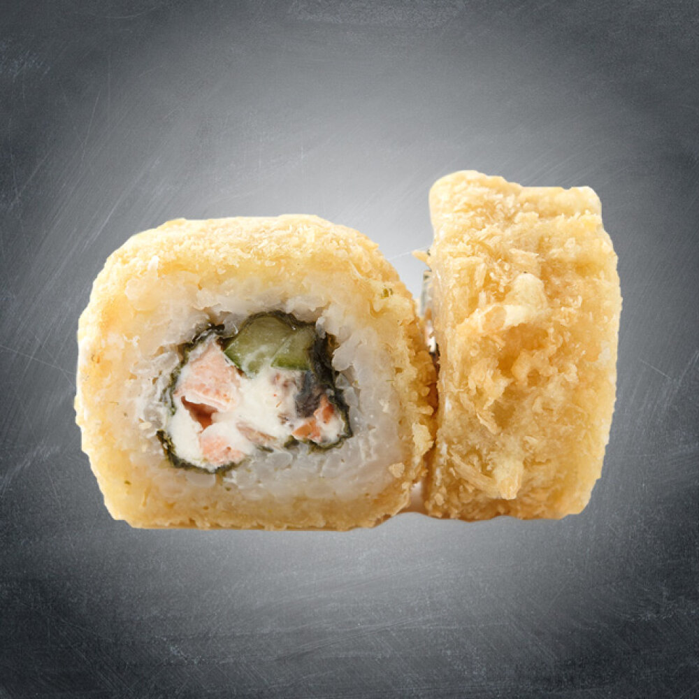 Сливочный сыр, лосось, угорь, огурец, кляр, сухари панировочные, рис, нори.(8 шт.)
