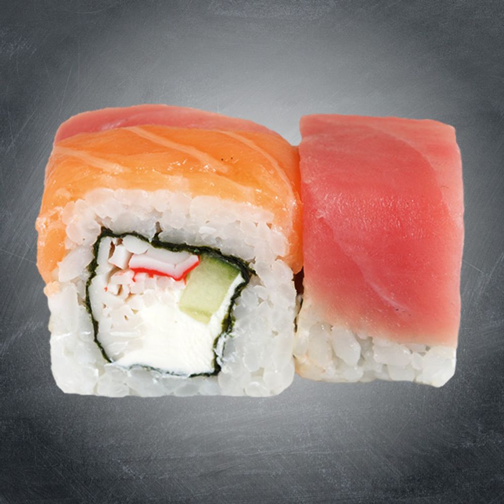 Лосось,тунец,сливочный сыр,снежный краб,огурец,рис,нори.(8шт.)