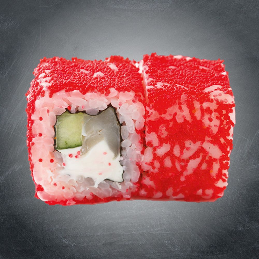Сыр сливочный,морской гребешок,спайси соус,огурец,тобико,рис,нори. (8шт.)