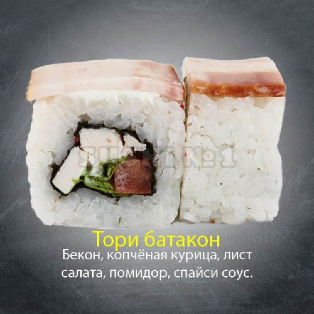 Бекон, копчёная курица, лист салата, помидор, спайси соус (8шт)