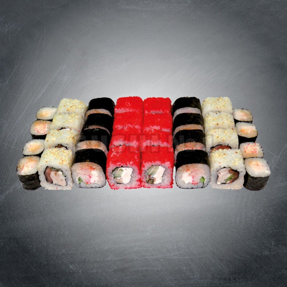 АКИНАВА,ЦЕЗАРЬ,КАЁСИ МАКИ,СПАЙСИ КАНИРОЛЛ ( 32 шт) Соевый соус 3 шт.,имбирь 40 гр.,васаби 15 гр.