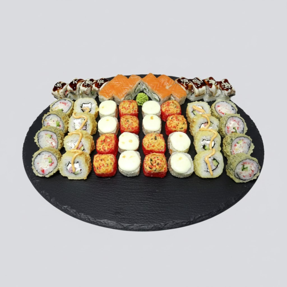 Фила лайт, Канада, Эби тэмпура, Калифа тэмпура, Чикен ролл, Игай чили (48 шт.) Соевый соус (4 шт.), имбирь (70 г), васаби (25 г)